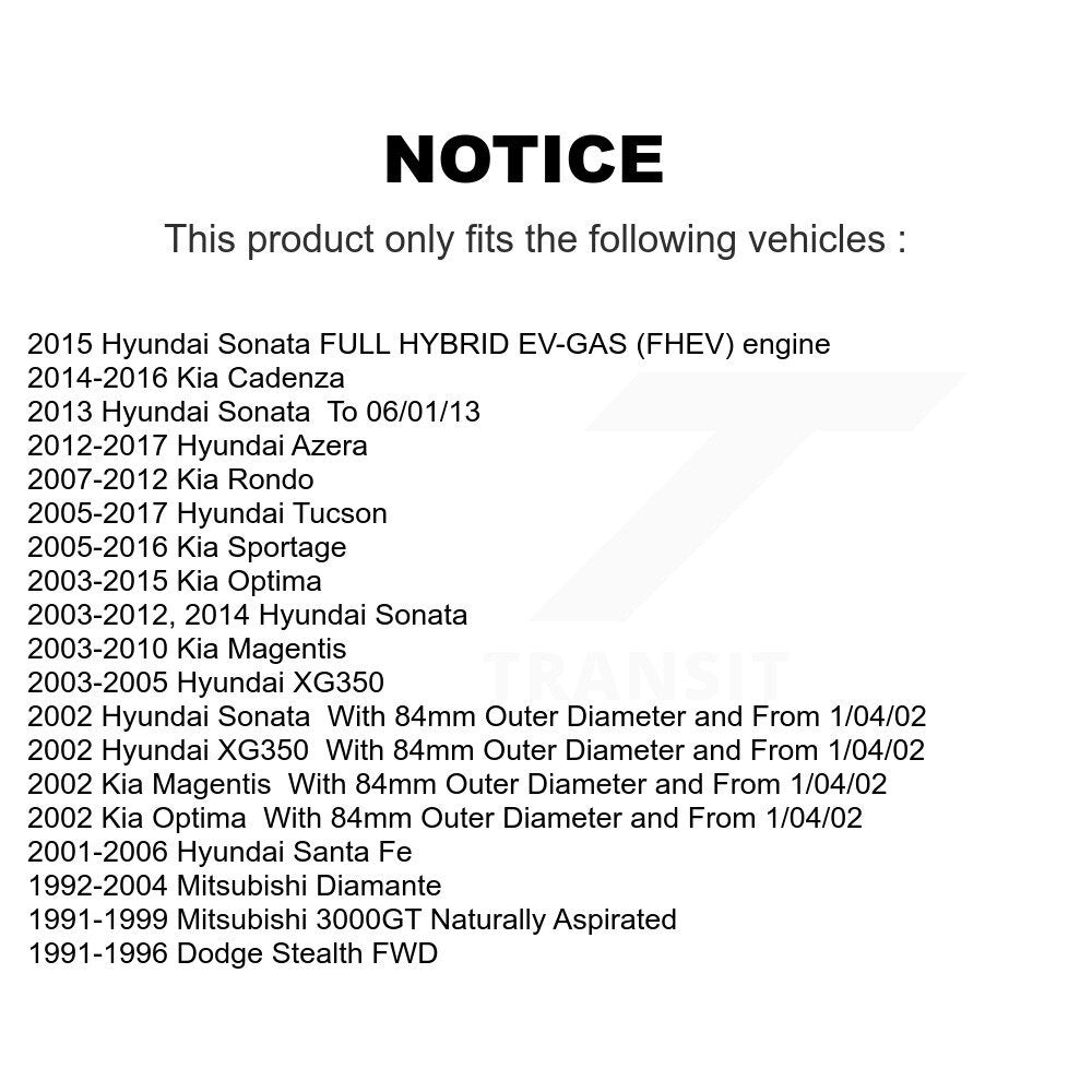 - Kia Optima 2002 to 2015